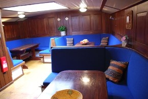 The Sudermar is a solid, sturdy barge (tjalk) from 1904. For a long time she set sail with cargo, both within and outside the Netherlands. Nowadays, she sails with guests who enjoy being together on a ship, and who want to know how it feels to sail as they did in the good old days. Therefore, the Sudermar is the perfect ship. Upper decks, all characteristics have been retained and leeboards and sails are still hoisted with ropes, so all hands on deck. Below decks the ship has a comfortable and cosy interior with ample space and room for the guests. The construction of this typical Frisian shallow drafted ship makes her very suitable to sail in various water-depths. Sailing through the IJsselmeer's roaring waves, enjoying a discovery trip on the Friesian lakes, or going through the shallow gullies of the Waddensea. The crew of the Sudermar makes the most of this ship's qualities under all kinds of weather conditions, so that their guests remember this trip as an unforgettable adventure.
