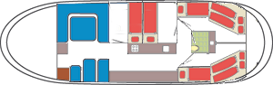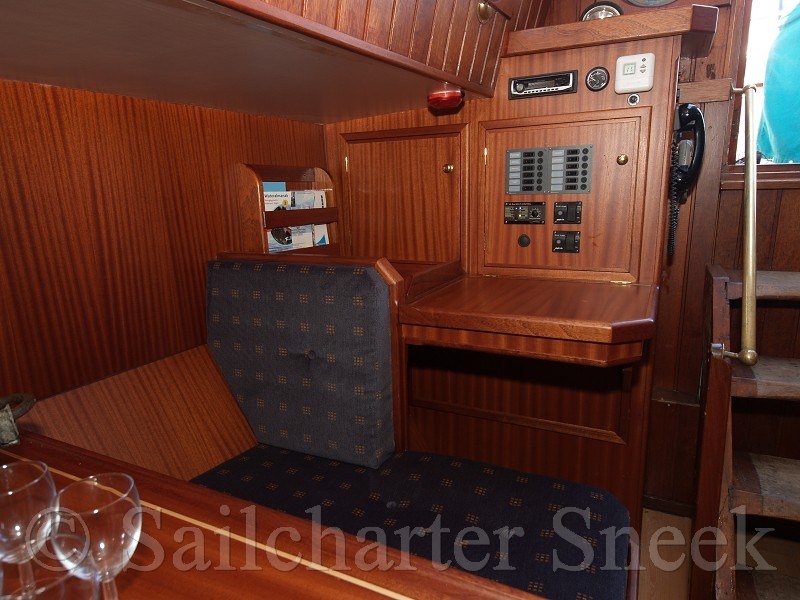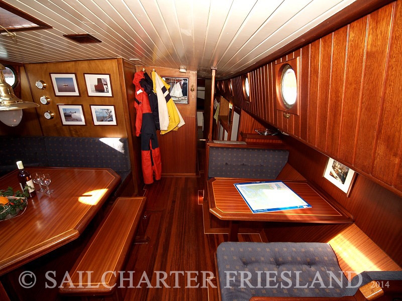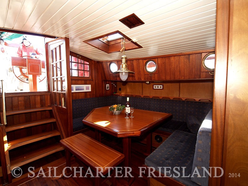 Below deck, the large saloon and excellent kitchen ensure a comfortable stay.The ship has a 4-burner stove, fridge, hot and cold running water, shower, toilet and oil -fired heater. A waste-water tank is installed, so you can use the toilet and shower in port.