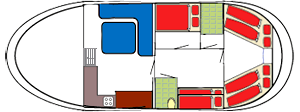 After several conversions and refits over the years, this yacht is now offering two cabins (1 x 2 people and 1 x 4 persons) and two bunk beds in the hallway, so total of eight beds.