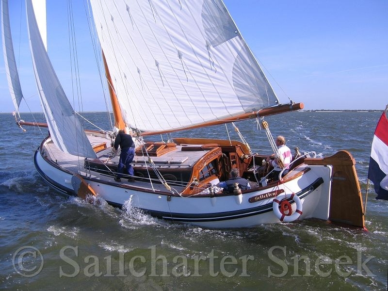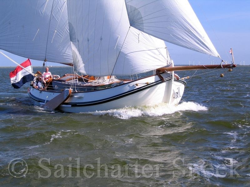 New from season 2013: The elegant white Lemsteraak BELLE FLEUR, built in 2005 by SRF Harlingen, designed by Bekebrede. Very nice lines, very slim underwater ship, guarantee perfect sailing characteristics. Extensively equipped and finely shaping very luxurious as well inside as outside. Tasteful salon, teak decks, ... a very spacious laid out flat bottom, in the whole ship headroom!