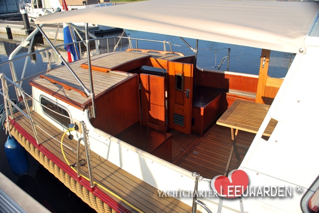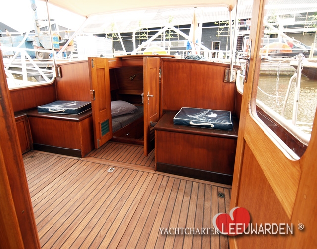 In the begin of the year 2014 we bought these Gillissenvlet , noble executed with Teak deklayout , Teak gangways and the open cockpit is provided with teak too. It is a combination between a model with an aft cabin and a model with an open cockpit. This vlet with 9:50 meters in length offers both an aft cabin with 2 single beds (~ 1.80 meters long ) and an open cockpit to enjoy sheltered the sunset.