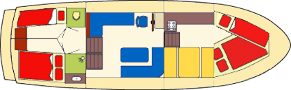 Towards the stern end of the ship you will find a bedroom with a double bed, a bedroom with two single beds , a second toilet and a bathroom with shower and washstand.